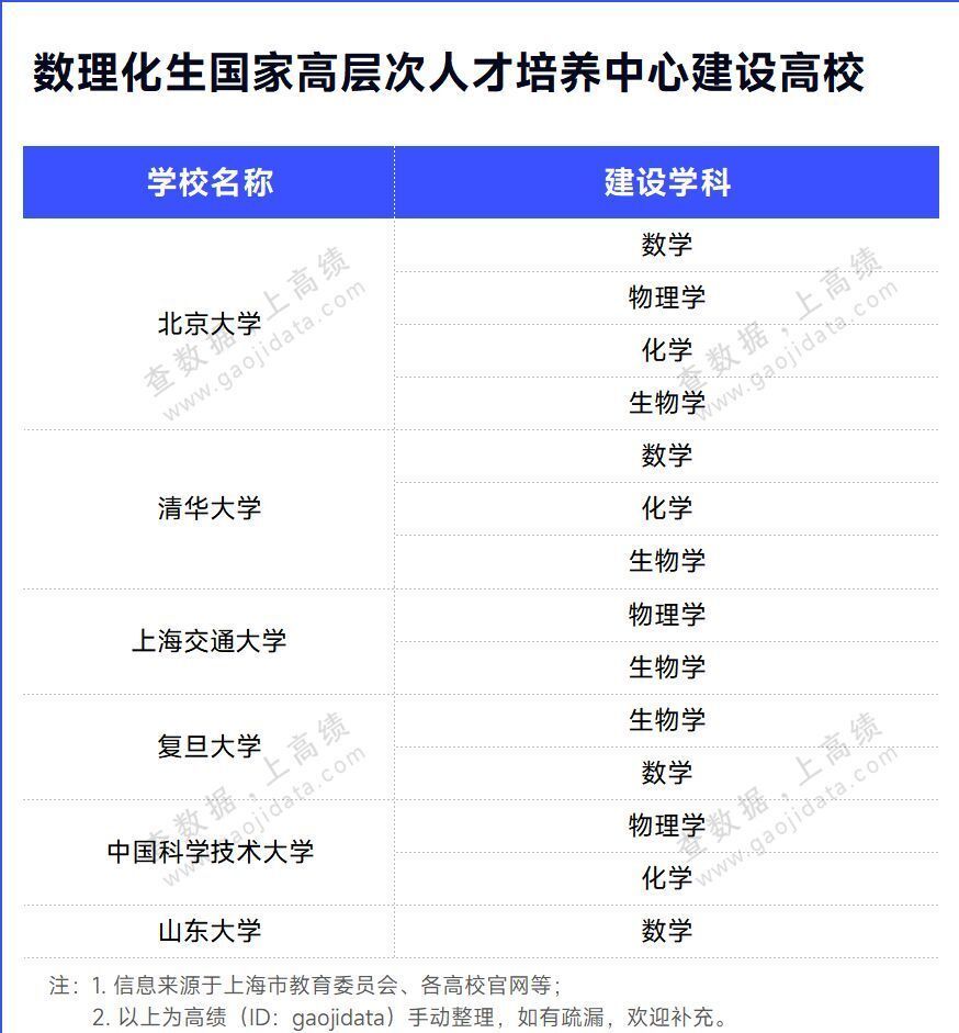 目前,该中心聚焦数理化生四大基础学科,在北京大学、清华大学、上海交通大学、复旦大学、中国科学技术大学、山东大学等6所高水平大学建设了14个数理化生国家高层次人才培养中心。